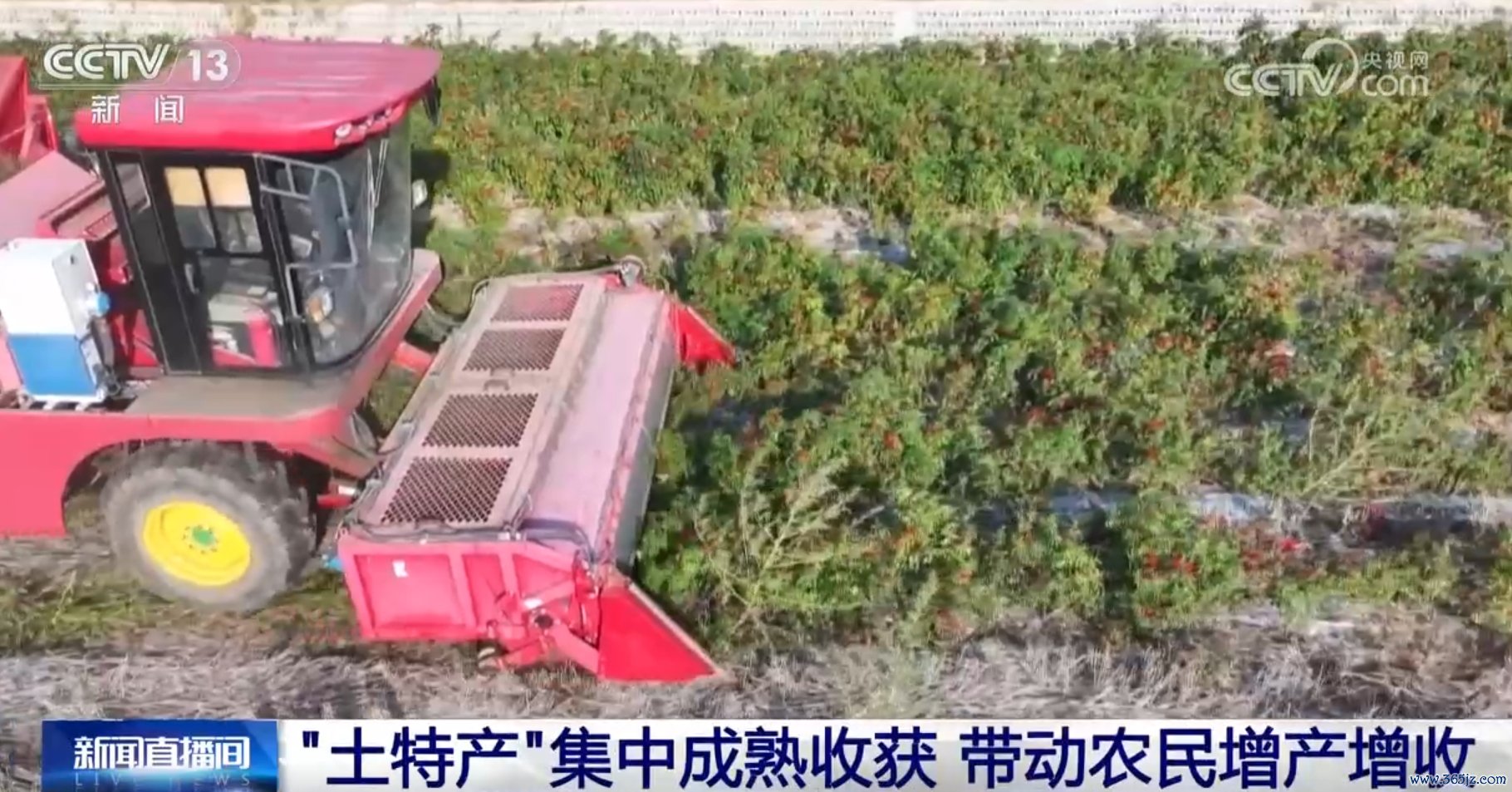 河南临颍的辣椒正在收成,拔擢户们通过辣椒专用收成机一次就能完成摘果、输送和自动卸料的责任。