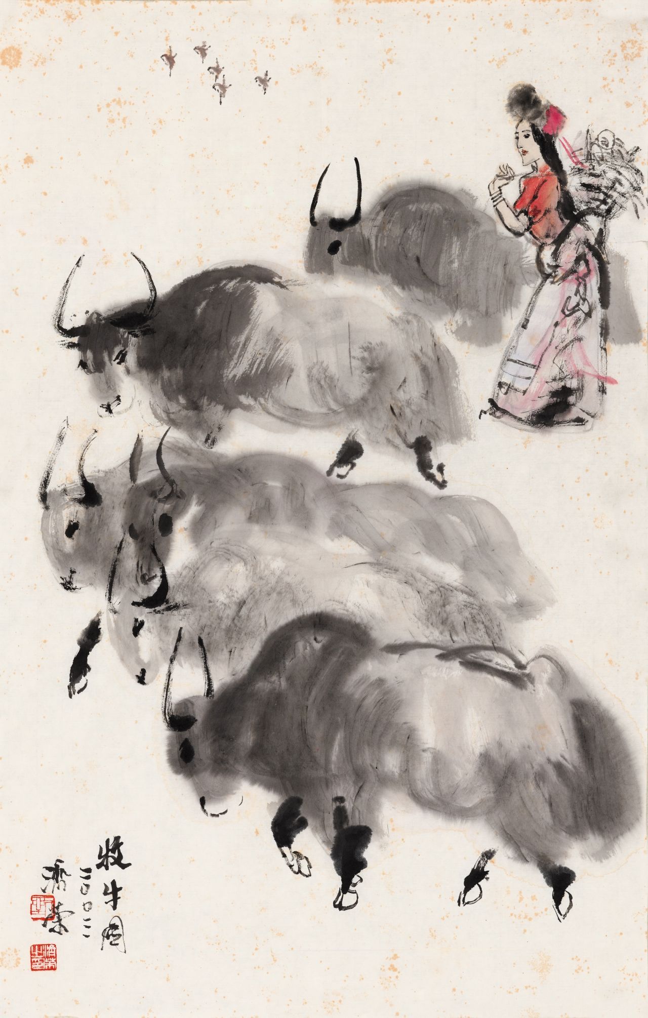 到了1990年代后期,刘济荣又开动画家乡岭南地区的水牛。他自称“牧牛东谈主”,还写了一首打油诗:“生在牛村认牛命,只识画牛不自满。”牛成为他作品的代表符号。2016年,刘济荣亏空。次年,一册纪念他艺术东谈主生的著述出书,书名就叫《犇——刘济荣谈艺录》。