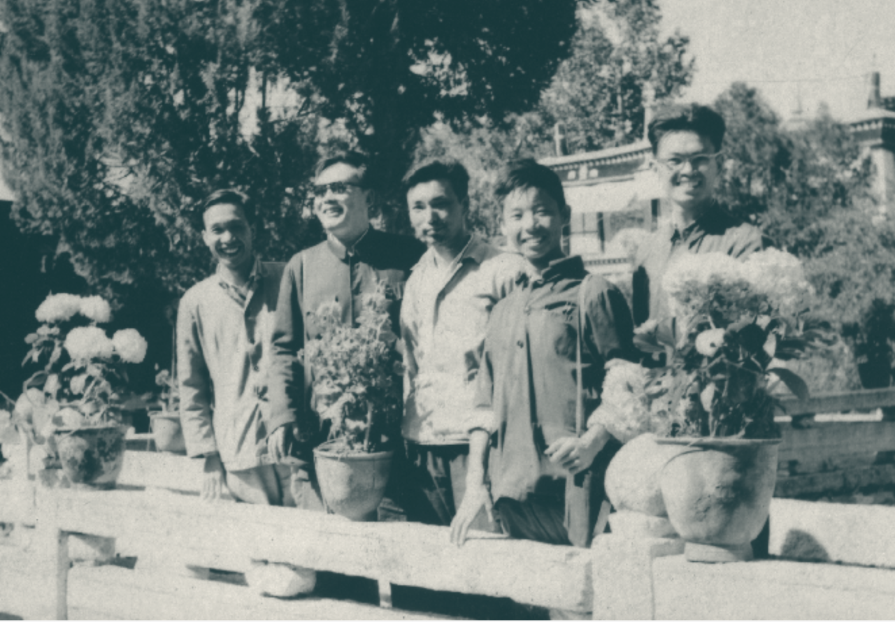 1965年,梁世雄、牛文、姚耕云、其加达瓦、杜英信在拉萨合影。受访者供图