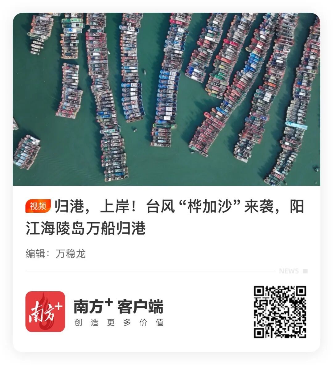 一齐记者抵达阳江海陵岛后直奔口岸,现场数百艘渔船果决有序泊岸在港湾。渔民们加紧加固缆绳,渔政部门加紧巡视,接触的接驳船忙个不休,东说念主们在狂风巨浪到达前的窗口期争抢时分。