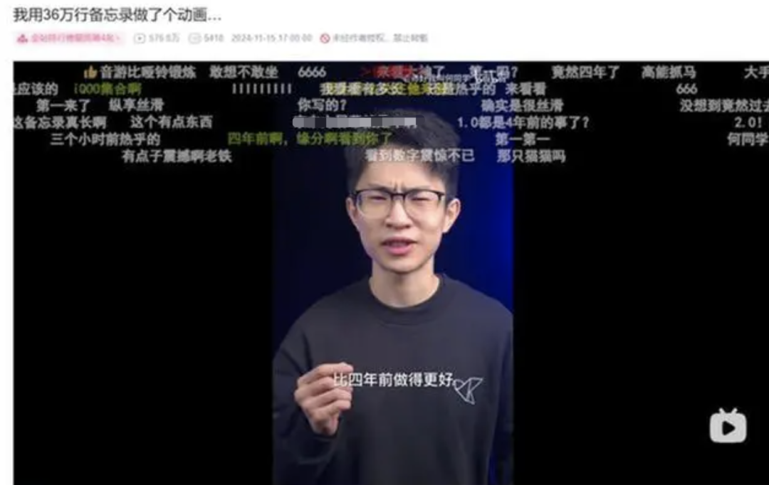 近日,千万粉丝博主@淳厚好我叫何同学发布的视频《我用36万行备忘录作念了个动画》激勉网友质疑。