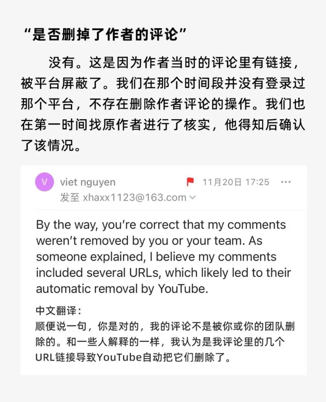 他暗示莫得删掉作家的挑剔,作家那时的挑剔里有聚合,被平台屏蔽了。他们也在第一时辰找原作家进行了核实,对方说明了该情况。